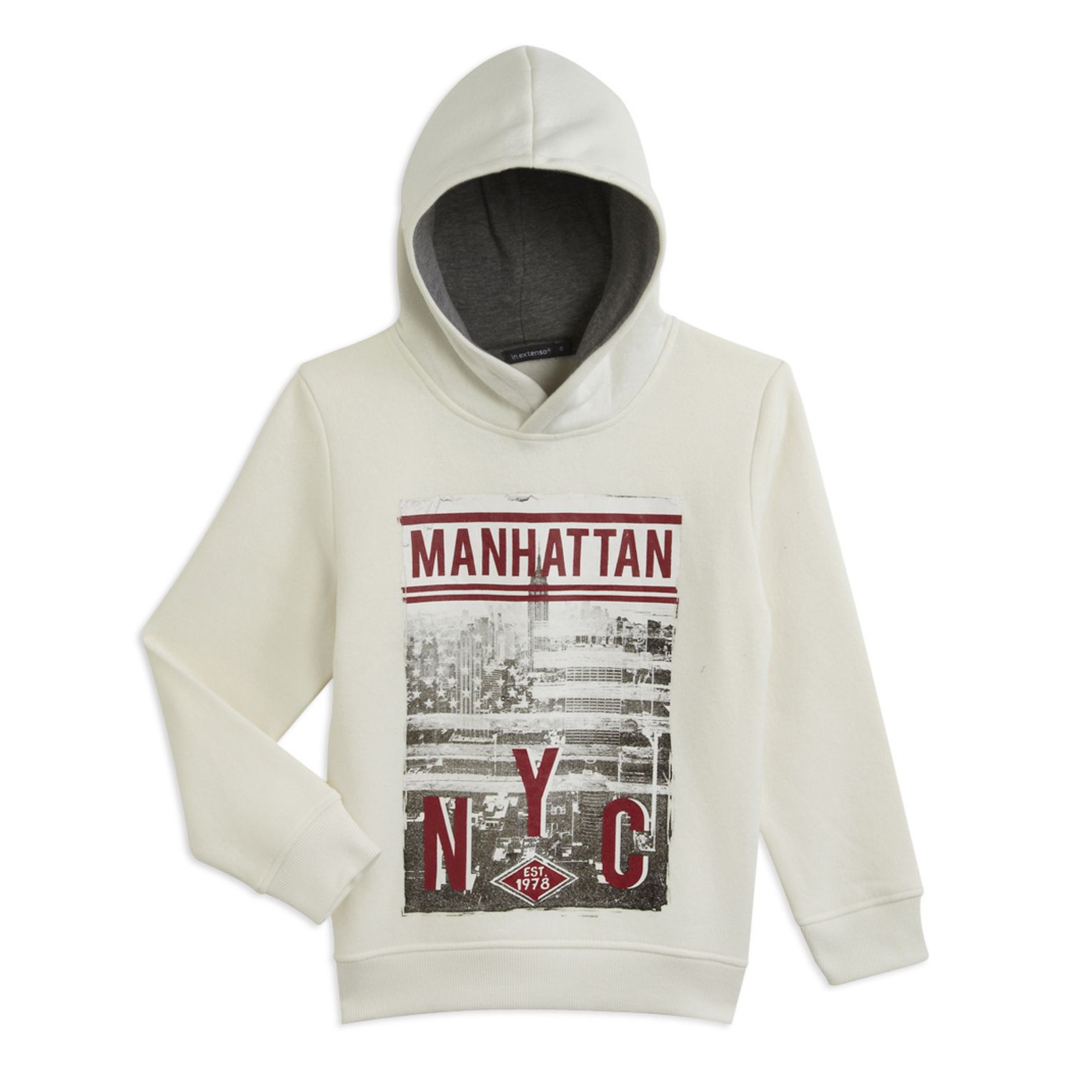 Ambiance américaine avec ce sweat à capuche : les garçons adorent ! Réalisé en molleton. Intérieur chaud et doux. Agréable à porter. Capuche doublée en jersey. Grand imprimé sur le devant. Finition bords-côtes. Ce sweat enfant est lavable en machine à 30°.