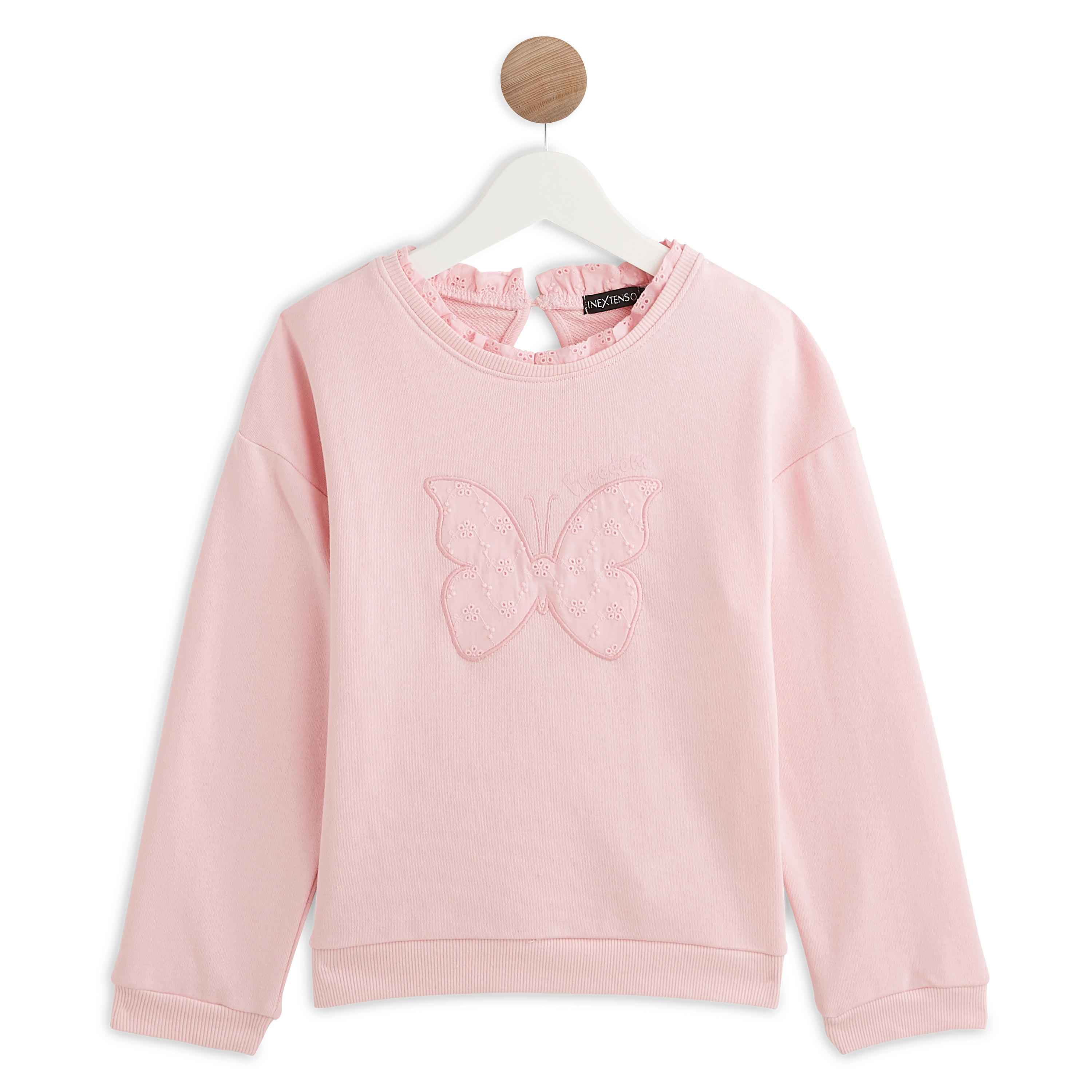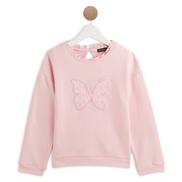Ce sweat possède un beau papillon brodé sur le devant, apportant une touche coquette et féminine au vêtement. Le bas des manches et le bas de corps sont en bords-côtes. Le sweat est souple et peut se porter par dessus un tee shirt ou une petite chemise.