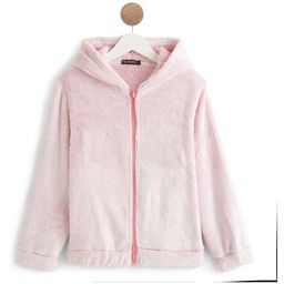 L’enfiler, c’est l’adopter ! Ce gilet en maille peluche est tellement doux que les filles ne voudront plus le quitter. Pratique à enfiler, ce gilet possède une base et des bords de manches élastiqués. La fermeture zippée permet de l’ouvrir et de le fermer en un clin d’œil, et la capuche affiche deux oreilles avec empiècements pailletés : absolument douillet et complètement craquant !