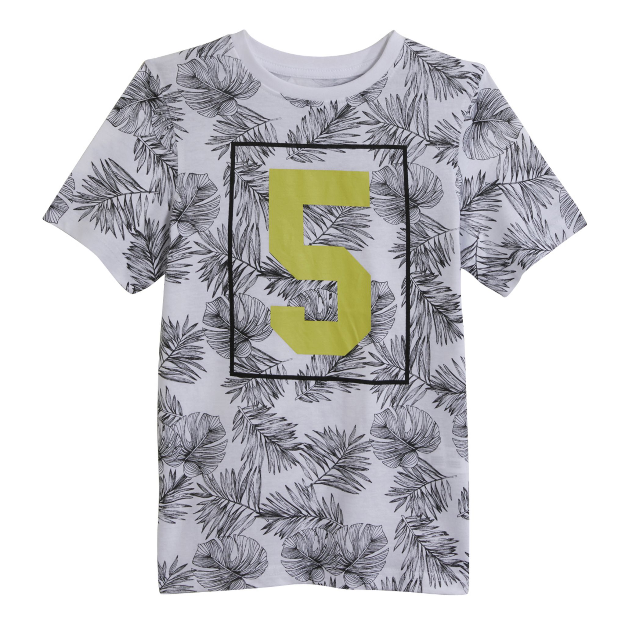 En savoir +Original et tendance, ce tee-shirt garçon à manches courtes aura du succès cet été ! On aime : l'imprimé "feuilles tropicales". Il est réalisé en coton, doux et confortable. Le t-shirt garçon possède un col rond et des manches courtes. Il est facile d'entretien.