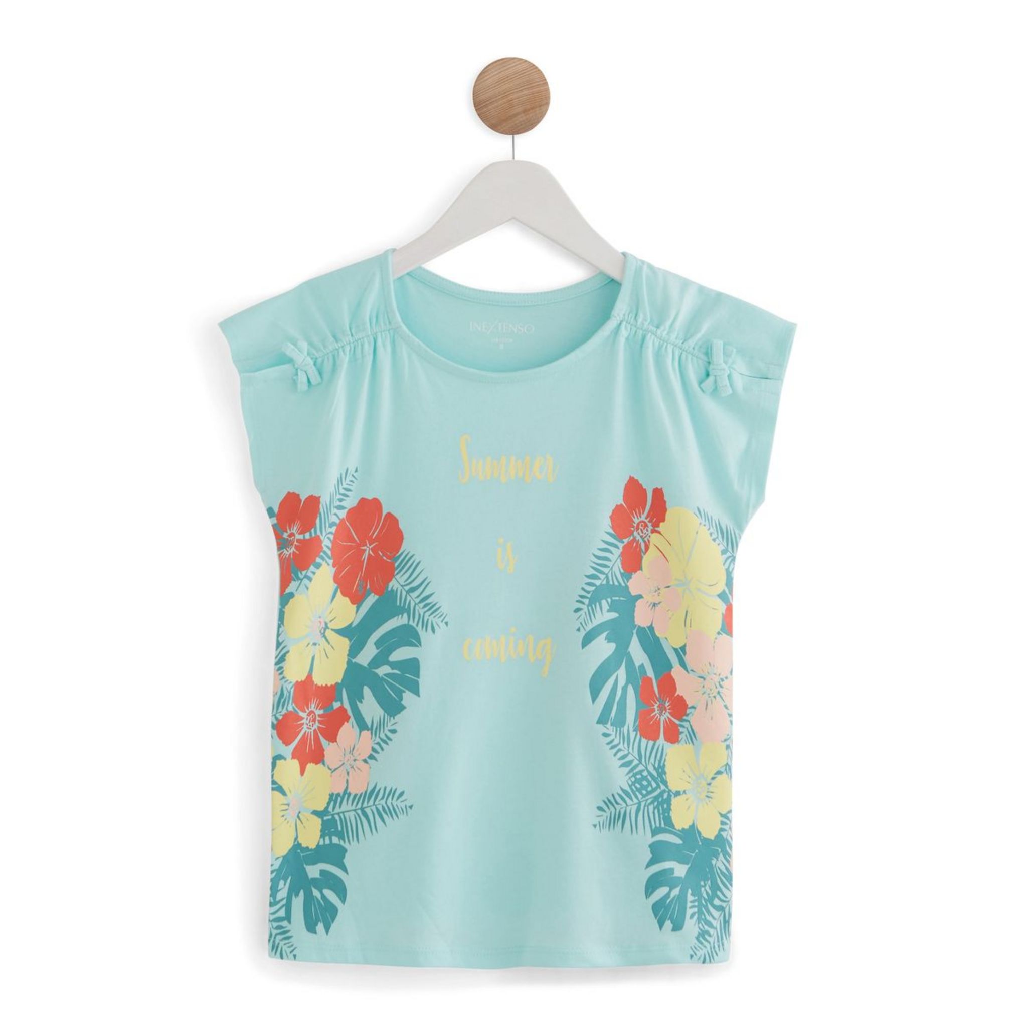Voilà un T-shirt pour fille qui sent bon l'été ! Il nous séduit avec son imprimé au style tropical et ses fronces sur les épaules. Confectionné en pur coton, ce T-shirt manches courtes est confortable et agréable à porter.