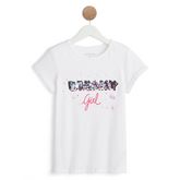 Coloré et pétillant, ce t-shirt à manches courtes pourrait bien devenir le préféré des filles avec son motif girly rehaussé de sequins réversibles ! Ce t-shirt possède une encolure ronde et des revers cousus aux manches.