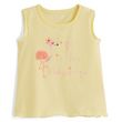En savoir +Avec ce charmant débardeur jaune, votre petite chérie sera plus mignonne que jamais pour traverser la belle saison ! Pour nous plaire, ce débardeur affiche avec imprimé flamant rose très tendance et possède une finition froufrous ainsi qu'un petit pompon fantaisie : on ne lui résiste pas ! Pour le confort de bébé, ce débardeur est confectionné en 100% coton.