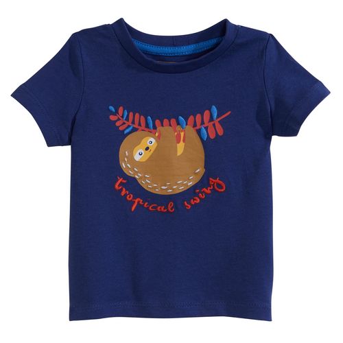 Ce tee-shirt se mixera parfaitement avec un short ou un pantalon bébé ! Agréable à porter et doux, 100% coton. Le vêtement bébé dispose d'un imprimé sur le devant avec léger relief, d'un col rond et de manches courtes. Ce t-shirt bébé garçon est lavable en machine à 40°.