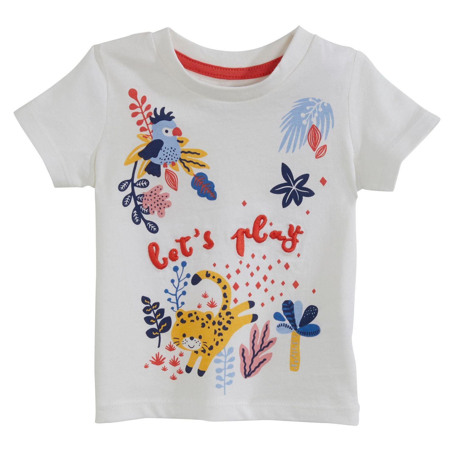 En savoir +Ce charmant tee-shirt bébé garçon plaira par son animation colorée et rigolote. Agréable à porter et doux, 100% coton. Le vêtement bébé dispose d'un imprimé sur le devant avec léger relief, d'un col rond et de manches courtes. Ce t-shirt bébé garçon est lavable en machine à 40°.