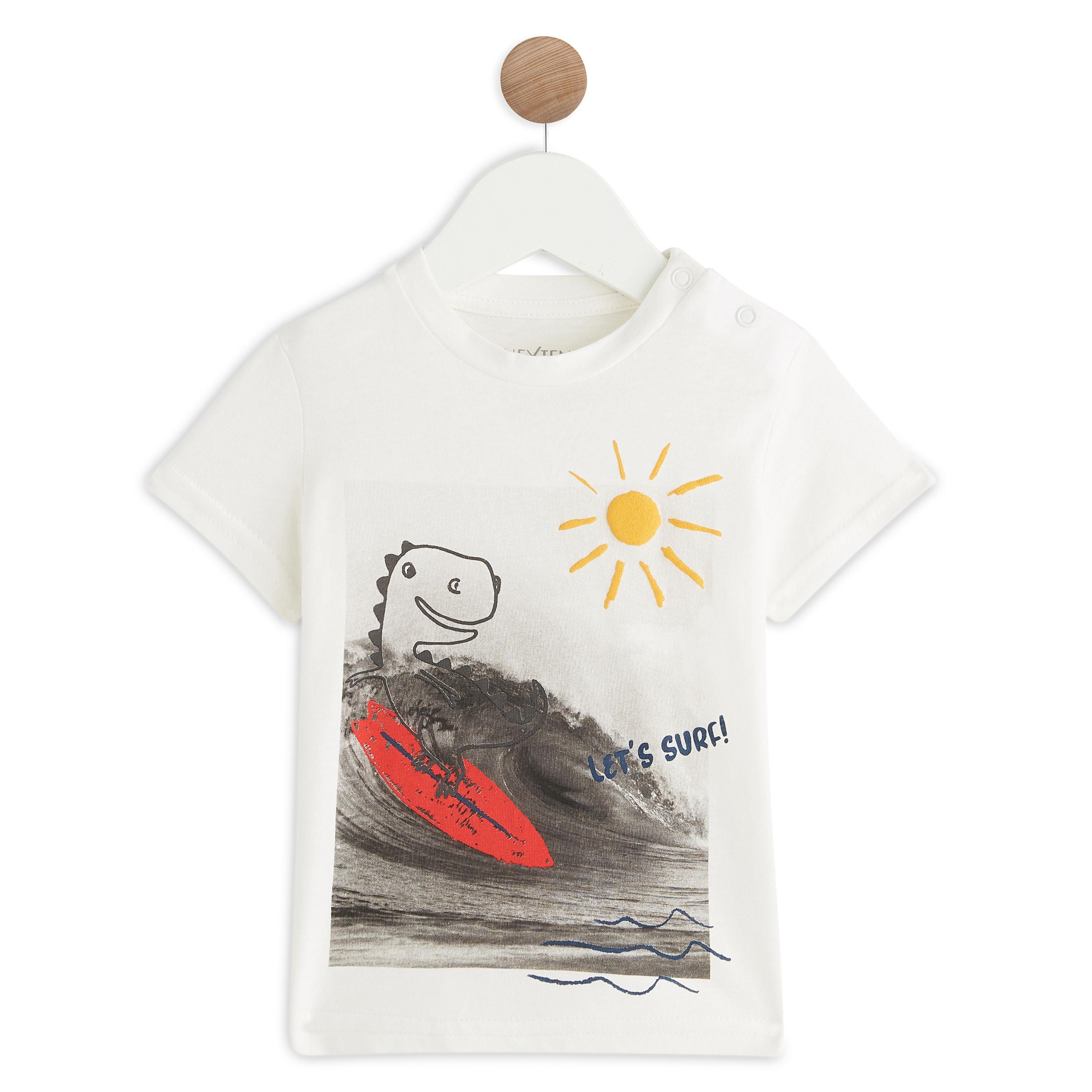 En savoir +Bébé va adorer ce t-shirt à manches courtes imprimé d'un dinosaure amusant qui fait du surf ! En jersey 100% coton, il est résistant et facile d'entretien. Ce t-shirt possède une ouverture pressionnée à l'épaule pour un enfilage facile.