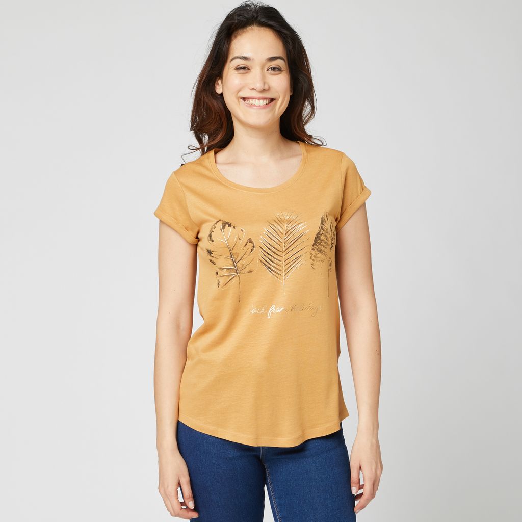 En savoir +Craquez sans attendre pour ce tee-shirt imprimé de feuilles à manches courtes ! Simple et confortable, il sera votre allié du quotidien.