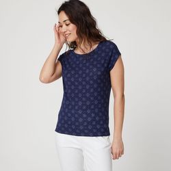 T-shirt manches courtes bleu marine imprimé graphiques femme
