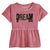 Les filles craquent pour ce tee-shirt à basque, original et plein de fantaisie. Agréable à porter. Effet délavé par endroit. 100% coton. Col rond, manches courtes à revers. Il n'y a pas d'étiquette dans le cou pour plus de douceur. Texte brodé sur le devant, avec légères paillettes et franges fantaisie. Base volantée. Ce t-shirt fille est facile d'entretien.