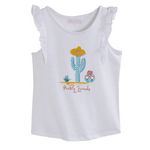 Ce débardeur fille annonce les beaux jours ! On aime : les volants fantaisie. Il est agréable à porter et doux. 100% coton. Le débardeur fille dispose d'un col rond et d'un imprimé coloré orné de légères paillettes. Il est facile d'entretien.