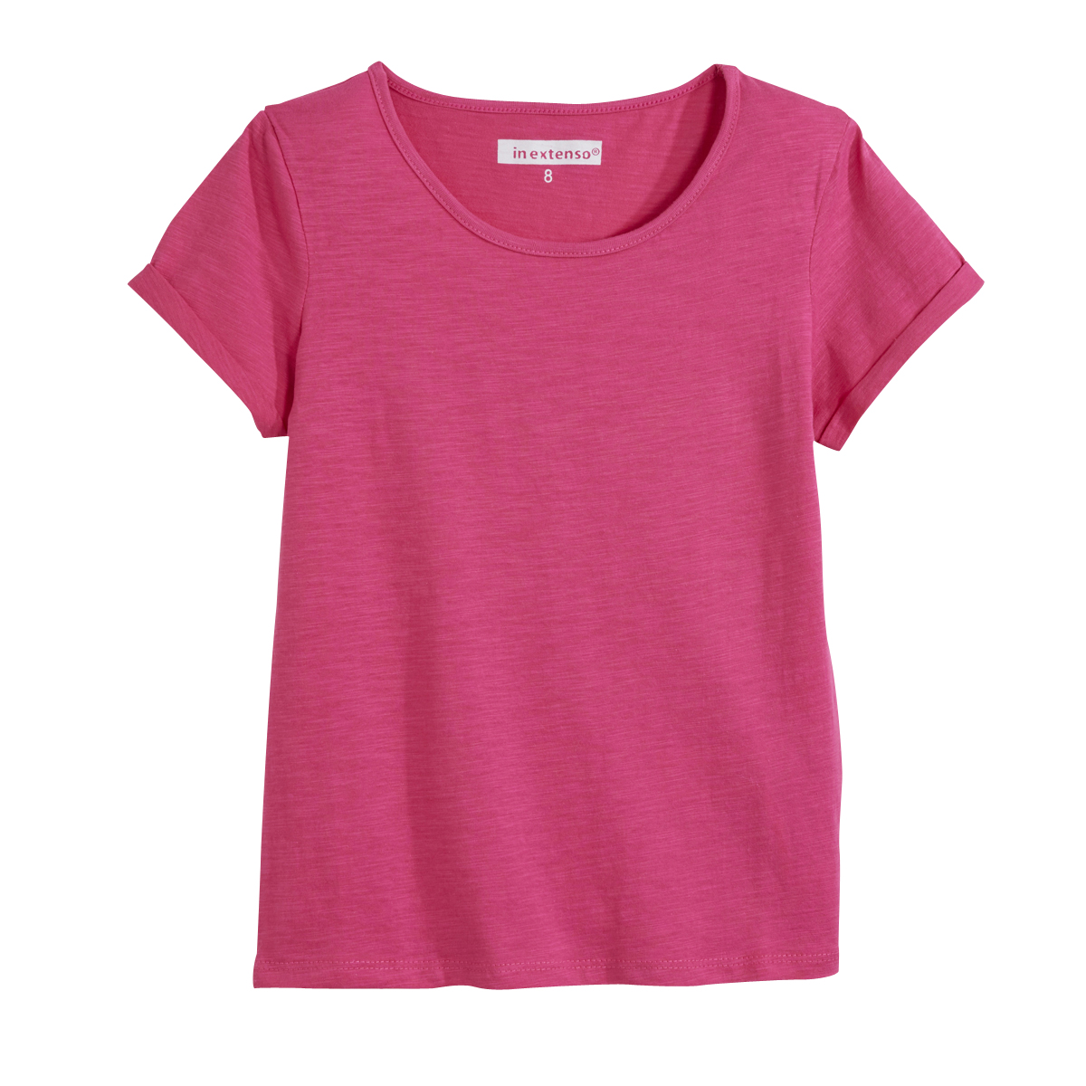 Ce tee-shirt uni égaye la silhouette des filles et se mixe avec tout : il est parfait pour cet été ! Il est agréable à porter et doux. Le t-shirt fille possède un col rond et des manches courtes. Il n'y a pas d'étiquette dans le cou pour plus de confort. Il est facile d'entretien.