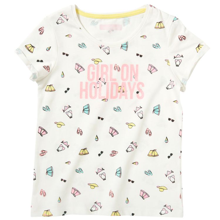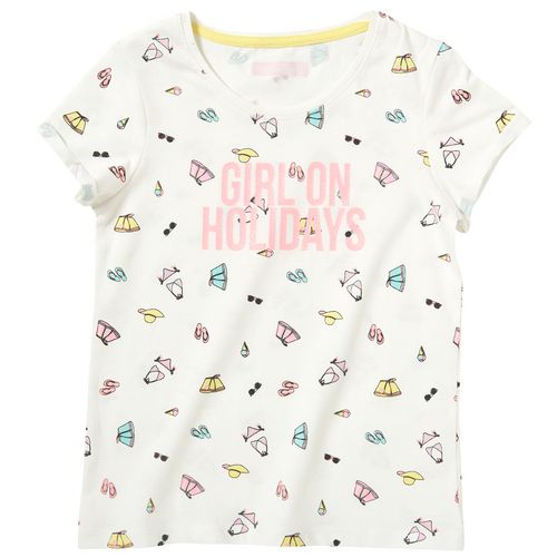 Ce tee-shirt imprimé pour fille est synonyme de vacances et de plage ! Il est réalisé en coton. On aime : son imprimé fantaisie. Le t-shirt fille possède un col rond et des manches courtes. Il est facile d'entretien.