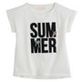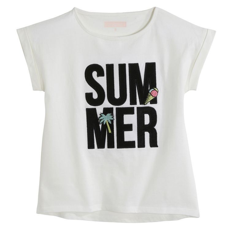 Original et frais, ce tee-shirt fille est parfait pour cet été ! Le plus : les deux patchs fantaisie amovibles à volonté. Le t-shirt fille possède un col rond, des manches courtes à revers et des lettres appliquées en relief sur le devant. Il n'y a pas d'étiquette dans le cou pour le confort. Il