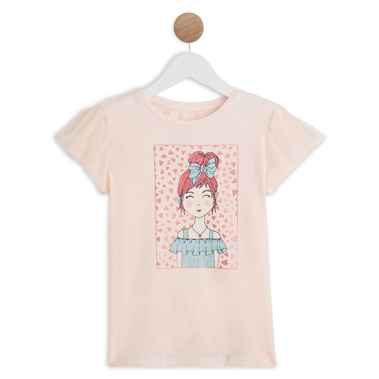 En savoir +Optez pour ce beau tee shirt à manches courtes avec tulle, apportant une touche coquette à la tenue de votre fille ! Il possède un imprimé sur le devant. Idéal pour cet été, ce tee shirt s'associe parfaitement avec un short, un bermuda ou un jean.