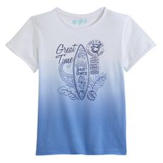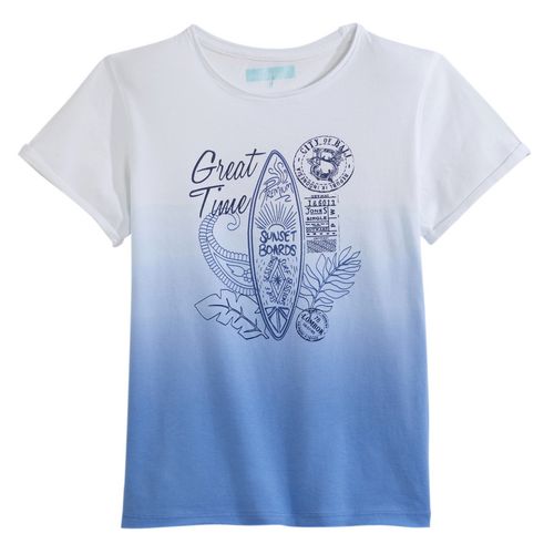 On adore l'effet délavé de ce tee-shirt garçon ! Il est léger et confortable. Découpes à cru au col rond et à la base. Revers aux manches. Imprimé sur le devant. Ce t-shirt garçon est lavable en machine à 40°.