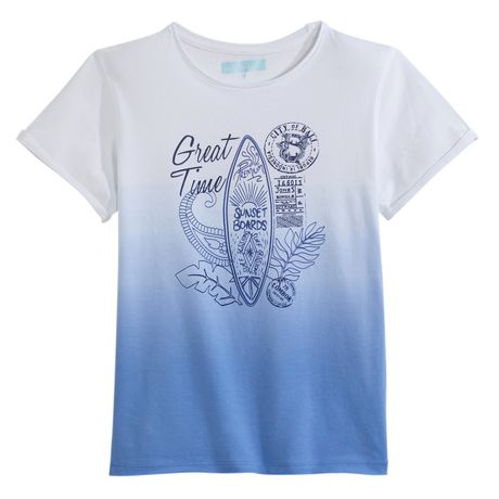 En savoir +On adore l'effet délavé de ce tee-shirt garçon ! Il est léger et confortable. Découpes à cru au col rond et à la base. Revers aux manches. Imprimé sur le devant. Ce t-shirt garçon est lavable en machine à 40°.