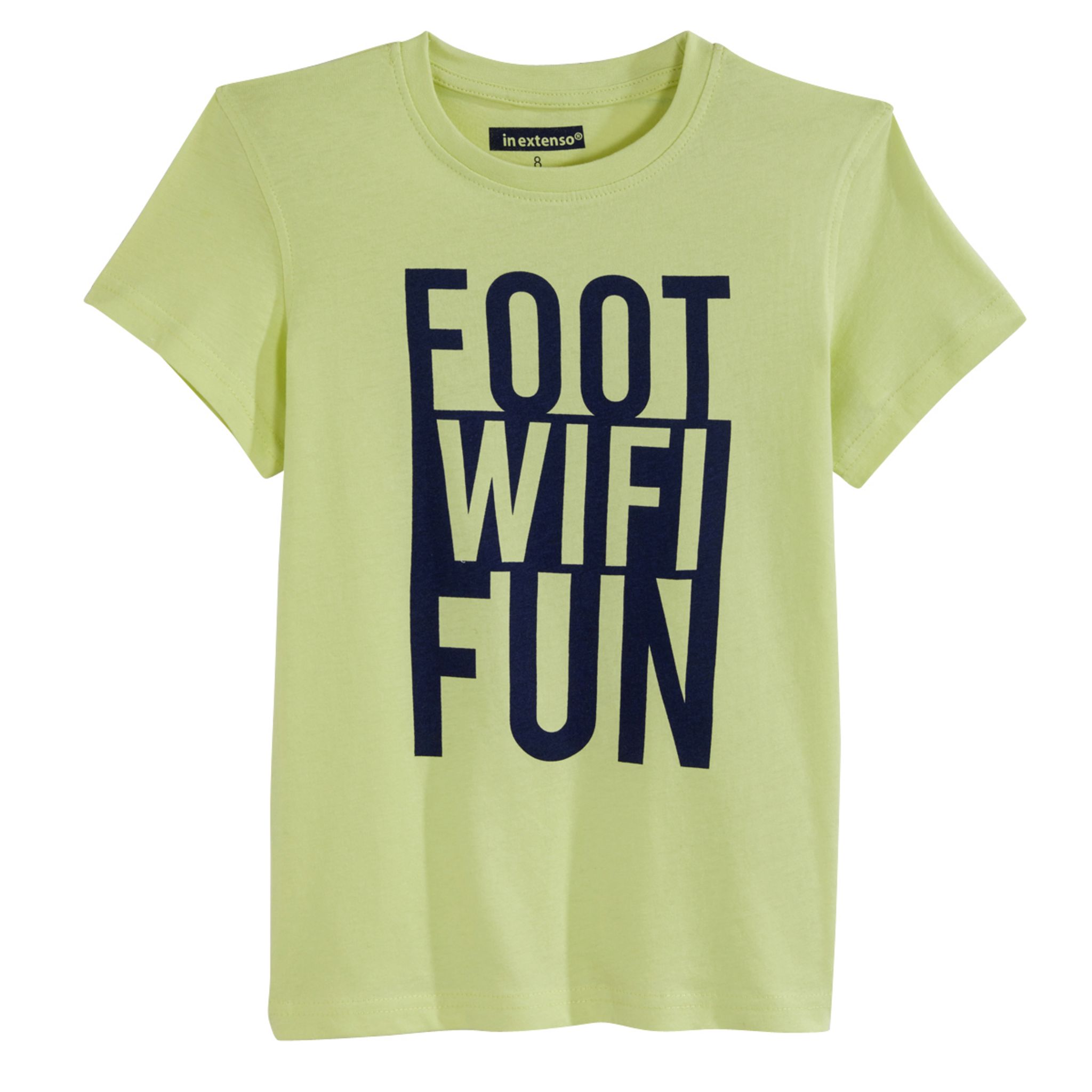 Les garçons adorent ce tee-shirt à message " Foot, wifi, fun" ! Agréable à porter. Toucher doux. 100% coton. Imprimé sur le devant. Col rond, manches courtes, il n'y a pas d'étiquette dans le cou pour plus de confort. Ce t-shirt garçon est lavable en machine à 40°.
