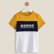 Super graphique avec son inscription floquée sur le devant, ce t-shirt à manches courtes est composé de trois empiècements de couleurs différentes. Très facile d'entretien, les garçons vont adorer porter ce t-shirt stylé au quotidien !