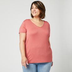 T-shirt manches courtes rose col v en dentelle grande taille femme