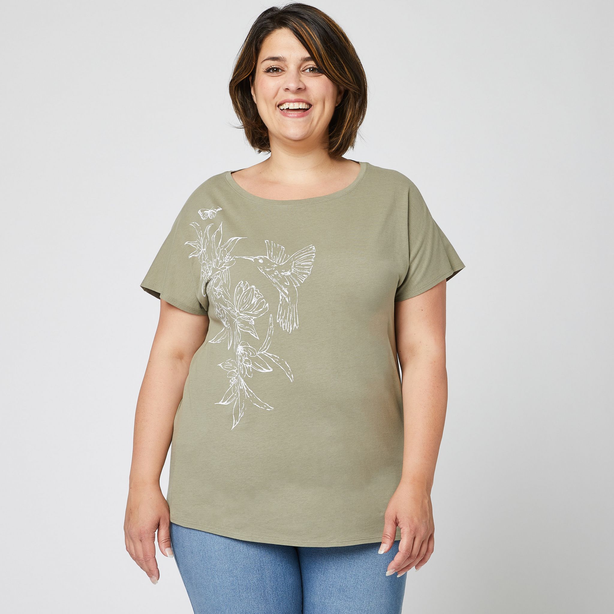 T-shirt manches courtes vert imprimé fleuri grande taille femme