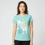 T-shirt manches courtes vert imprimé tropical femme