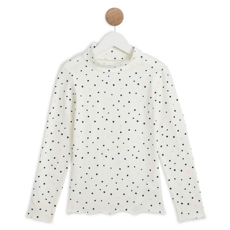 En savoir +Les filles sont stylées et confortables au quotidien avec ce t-shirt manches longues imprimé de pois bicolores ! On aime le motif le col montant qui protège du vent et les finitions ondulées aux manches et à la base. Ce t-shirt n'a pas d'étiquette dans le cou pour plus de douceur.