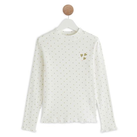 En savoir +Ce tee shirt à manches longues à pois est très girly, avec sa broderie coeurs sur la poitrine ! Il se porte facilement avec un jean.