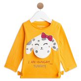 On fond pour ce t-shirt à manches longues bien douillet dans un jersey léger 100% coton, bébé va adorer le petit chien hyper craquant imprimé devant avec des pompons colorés en relief, et des jolis noeuds sur les côtés ! Le t-shirt possède un col rond avec une ouverture boutonnée et n'a pas d'étique