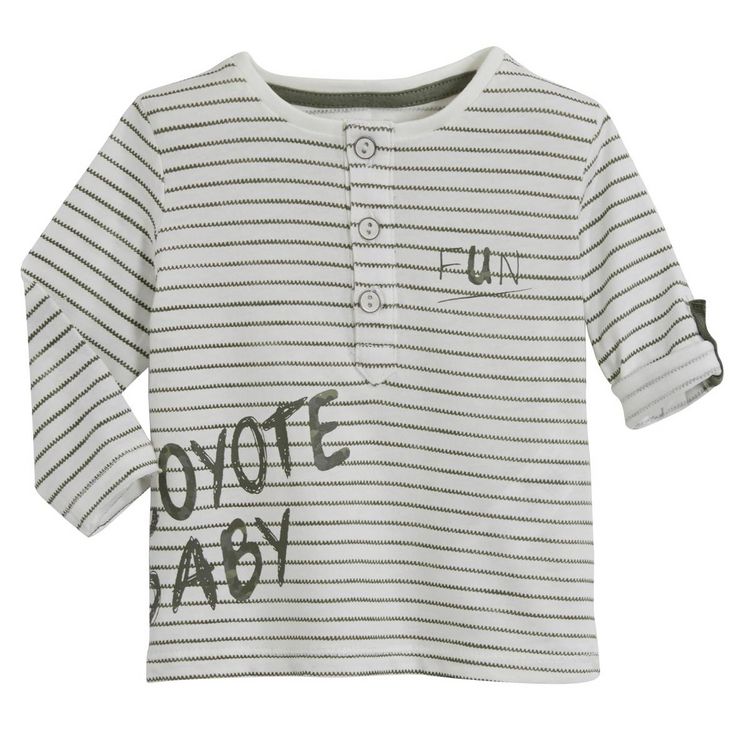 Ce tee-shirt à col tunisien, réalisé en coton, offre un look élégant et décontracté à bébé. Il est agréable à porter et doux. On aime : ses imprimés et détails fantaisie. Le t-shirt bébé possède un col rond avec une patte boutonnée et des manches longues retroussables par une patte boutonnée.