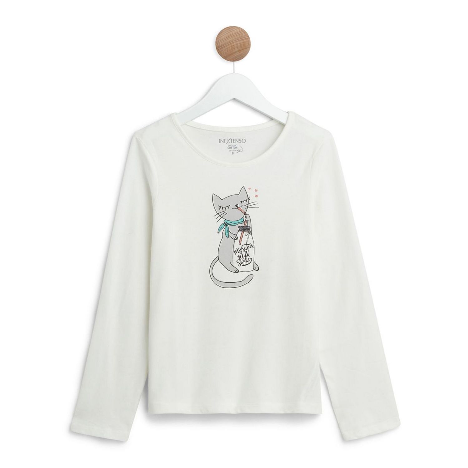 Absolument charmant, ce T-shirt à manches longues égaie toutes les tenues des filles ! On raffole de son imprimé chat fantaisie devant. Idéal pour le quotidien, ce T-shirt fille en coton présente une coupe facile à vivre et agréable à porter. Il possède un col rond et des manches longues.