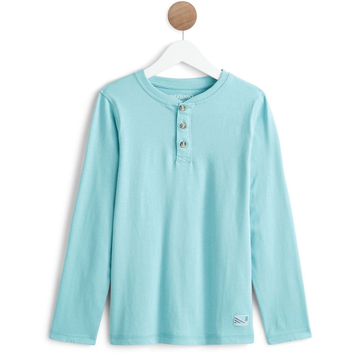 Confectionné en jersey de coton très doux, ce t-shirt à manches longues est à la fois cool et coquet : il affiche un joli coloris tendance, un col tunisien boutonné finition bord-côtes, et un patch cousu à la base du t-shirt. Confortable et facile à porter au quotidien, le t-shirt à manches longues