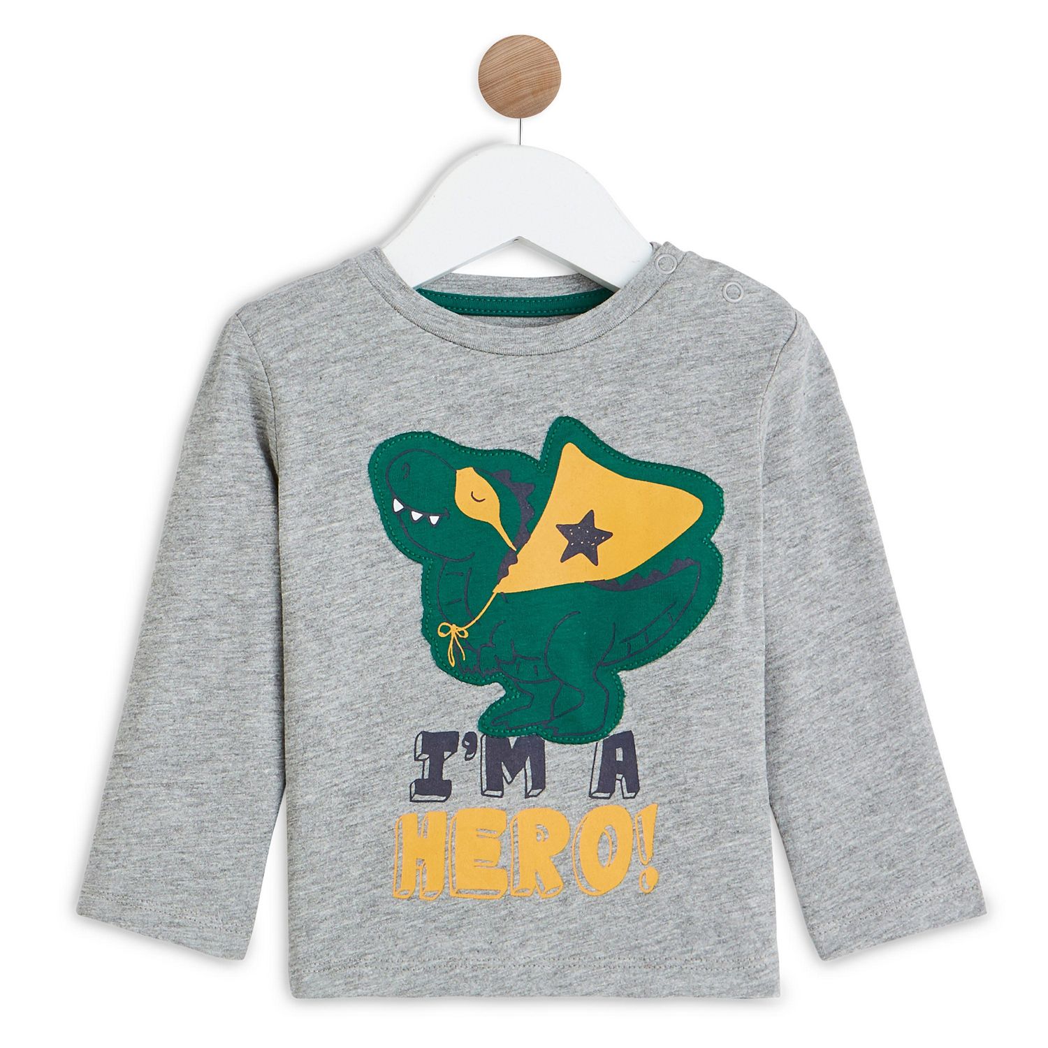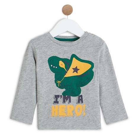 En savoir +Bébé va adorer ce t-shirt rayé à manches longues avec un patch motif dinosaure super héro ! En jersey 100% coton issu de l’agriculture biologique, il est résistant et facile d'entretien, ce t-shirt à manches longues possède une ouverture pressionnée à l'épaule pour un enfilage facile.