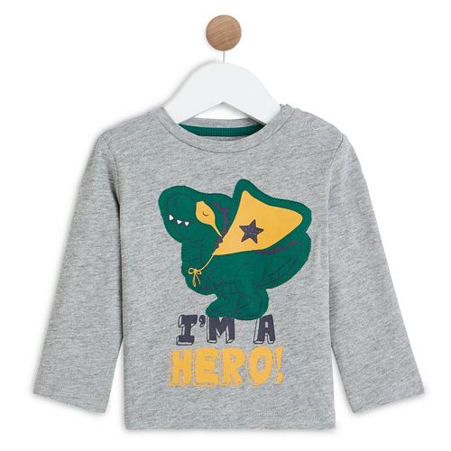 Bébé va adorer ce t-shirt rayé à manches longues avec un patch motif dinosaure super héro ! En jersey 100% coton issu de l’agriculture biologique, il est résistant et facile d'entretien, ce t-shirt à manches longues possède une ouverture pressionnée à l'épaule pour un enfilage facile.