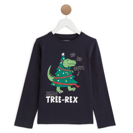 En savoir +Trop rigolo ce t-shirt à manches longues avec son imprimé dinosaure dans un sapin de Noël ! Facile à assortir, le t-shirt offre légèreté et douceur avec sa composition en jersey 100% coton.