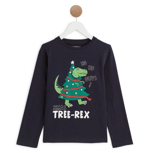 Trop rigolo ce t-shirt à manches longues avec son imprimé dinosaure dans un sapin de Noël ! Facile à assortir, le t-shirt offre légèreté et douceur avec sa composition en jersey 100% coton.