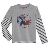 Ce tee-shirt donne un style décontracté et original aux garçons ! On aime : l'effet 2 en 1 rayé sur les manches et à la base. Le t-shirt garçon possède un col rond, des manches longues, un imprimé sur le devant. Il n'y a pas d'étiquette dans le cou pour plus de confort.