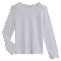 Ce tee-shirt blanc s'associera facilement avec les différents looks des filles. Il est réalisé en coton. On remarque l'absence d'étiquette dans le cou pour plus de douceur. Le t-shirt fille dispose de manches longues et d'un col rond.