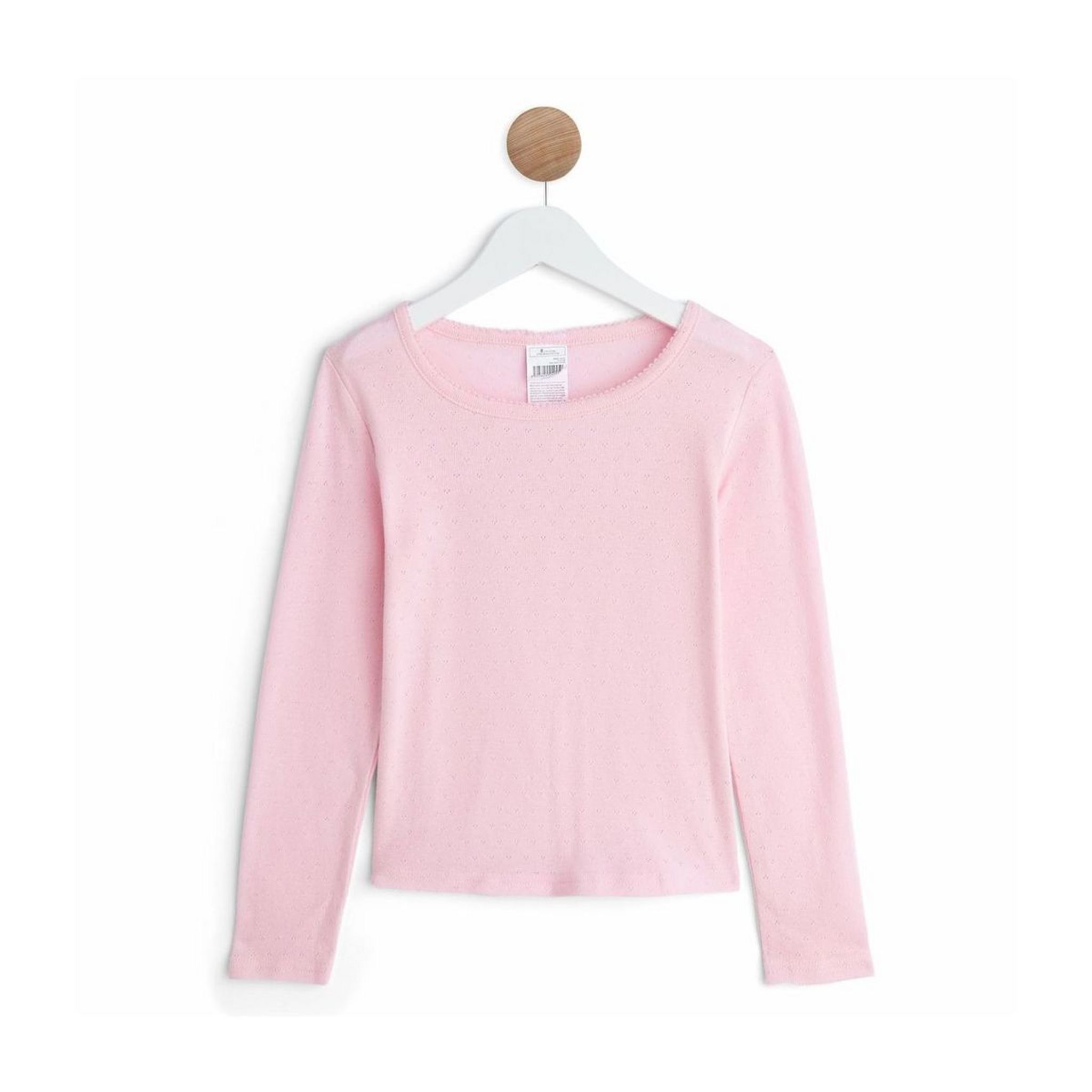 Indispensable du vestiaire des filles, le T-shirt pastel assure un confort parfait et s'associe avec tout ! Conçu en maille pointelle douce et chaude, ce T-shirt possède des manches longues et un col rond finition bord-côte avec picot fantaisie.