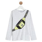 Trop stylé, ce tee shirt à manches longues affiche un grand motif en trompe-l'oeil style sac banane. Très confortable à porter, ce tee shirt est confectionné dans un jersey très facile d'entretien. Col rond finition bords-côtes.