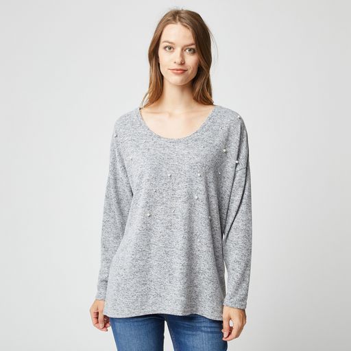 T-shirt manches longues gris grande taille femme