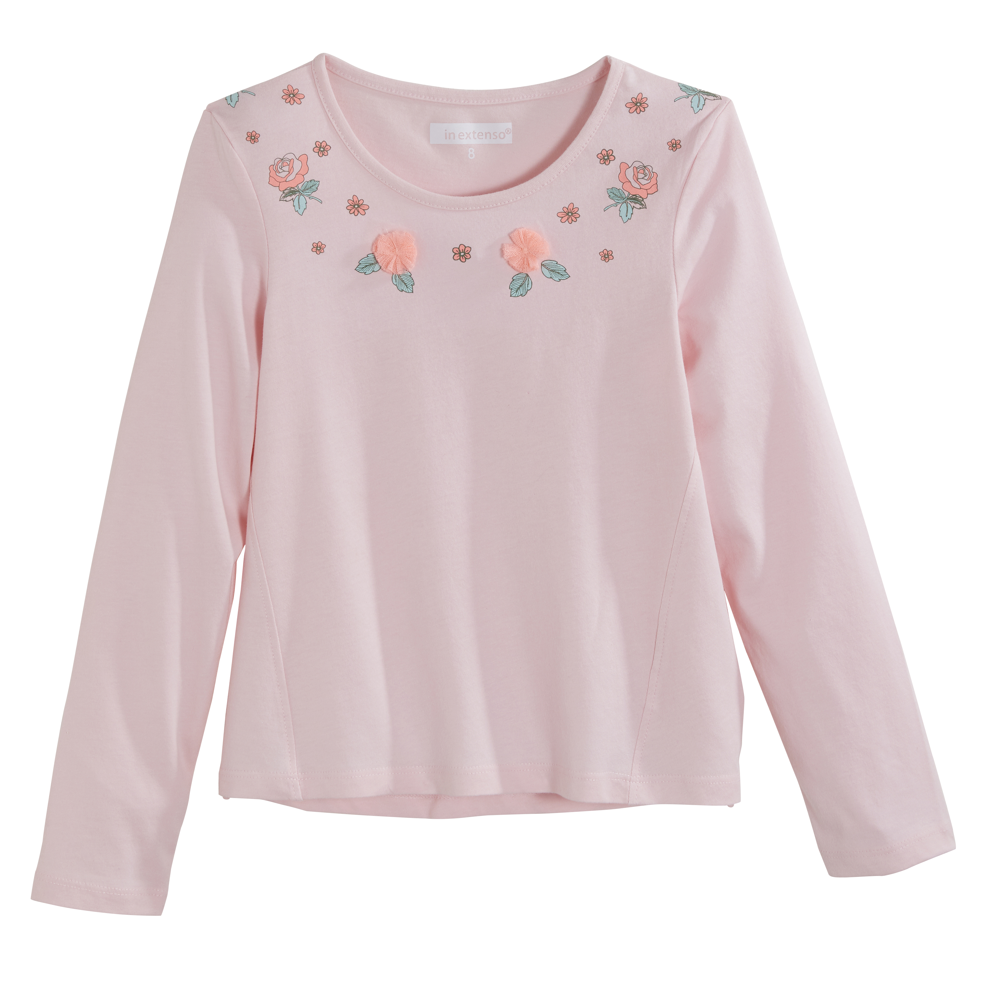 En savoir +On craque pour ce tee-shirt fille à fleurs. Il est réalisé en coton. Le t-shirt possède un col rond et des manches longues, on note le jeu de découpes. Il est facile d'entretien.