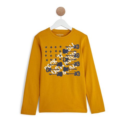 Avec ce T-shirt au motif floqué guitares, les garçons ajoutent une touche de rock'n'roll dans leurs looks quotidiens ! Facile à porter et conçu en 100% coton, il accompagne volontiers nos garçons pour les journées d'école. Ce T-shirt possède des manches longues et un col rond.