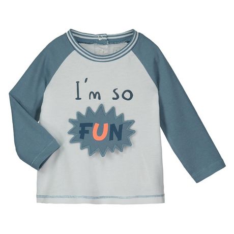 On adore ce tee-shirt bébé garçon ludique et facile à porter ! Il est agréable à porter. On aime : l'écusson et l'imprimé placés sur le devant. Le vêtement bébé dispose d'un col rond, de manches longues et d'une ouverture pratique en haut du dos. Col orné de rayures, jeu de surpiqûres. Ce t-shi
