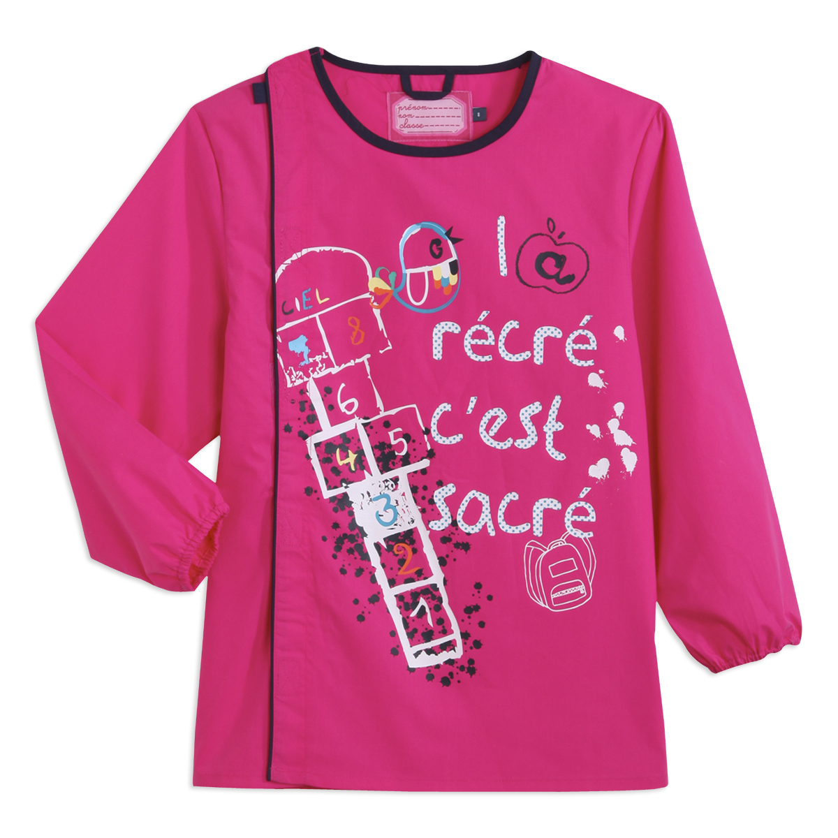Les petites écolières réaliseront de belles peintures sans se tacher grâce à ce tablier ! Ouverture pratique entièrement scratchée sur le côté. Poignets élastiqués pour ne pas les mettre dans la peinture. Imprimé amusant sur le devant. Pratique : étiquette intérieure pour noter le prénom. Ce tab