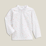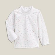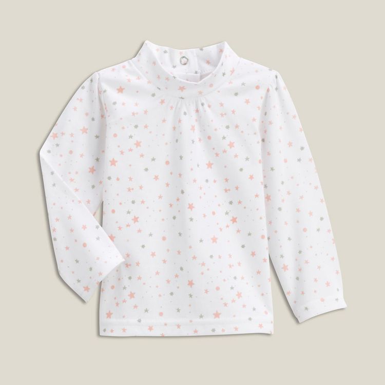 Bel imprimé fait d'étoiles pour cet ensemble tee-shirt et bandeau bébé. Tee-shirt confortable, ouverture pressionnée à mi-dos, manches longues, petites fronces sur les épaules et sous le col montant. Bandeau bébé coordonné, élastiqué, noeud fantaisie. Cet ensemble tee-shirt et bandeau bébé est lavab