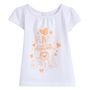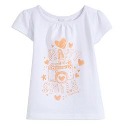 Frais et charmant, on craque pour ce tee-shirt bébé fille à manches courtes ! Agréable à porter et doux. 100% coton. Col rond. Fronces fantaisie sous le col et au niveau des épaules. Impression sur le devant. Ce t-shirt bébé fille est lavable en machine à 40°.