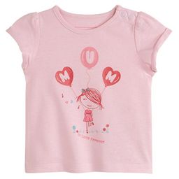 On prépare le dressing été de bébé avec ce tee-shirt à manches courtes ! Agréable à porter et doux. 100% coton. Col rond, avec ouverture pressionnée sur l'épaule. Fronces fantaisie et revers sur les manches. Imprimé, avec quelques paillettes sur le devant. Pas d'étiquette qui gratte dans le cou pour