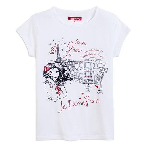 En savoir +Les rêveuses dans l'âme craquent pour ce tee-shirt ! 100% coton. Agréable à porter. Col rond, manches courtes. Impression sur le devant. Pas d'étiquette dans le cou pour un meilleur confort. Ce t-shirt fille est lavable en machine à 40°.