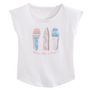 Frais et estival, les filles adoptent tout de suite ce tee-shirt ! Agréable à porter. 100% coton. Col rond, manches courtes. Imprimé avec légères paillettes sur le devant. Il n'y a pas d'étiquette dans le cou pour un maximum de confort. Base arrondie. Ce t-shirt fille est lavable en machine à