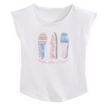 Frais et estival, les filles adoptent tout de suite ce tee-shirt ! Agréable à porter. 100% coton. Col rond, manches courtes. Imprimé avec légères paillettes sur le devant. Il n'y a pas d'étiquette dans le cou pour un maximum de confort. Base arrondie. Ce t-shirt fille est lavable en machine à